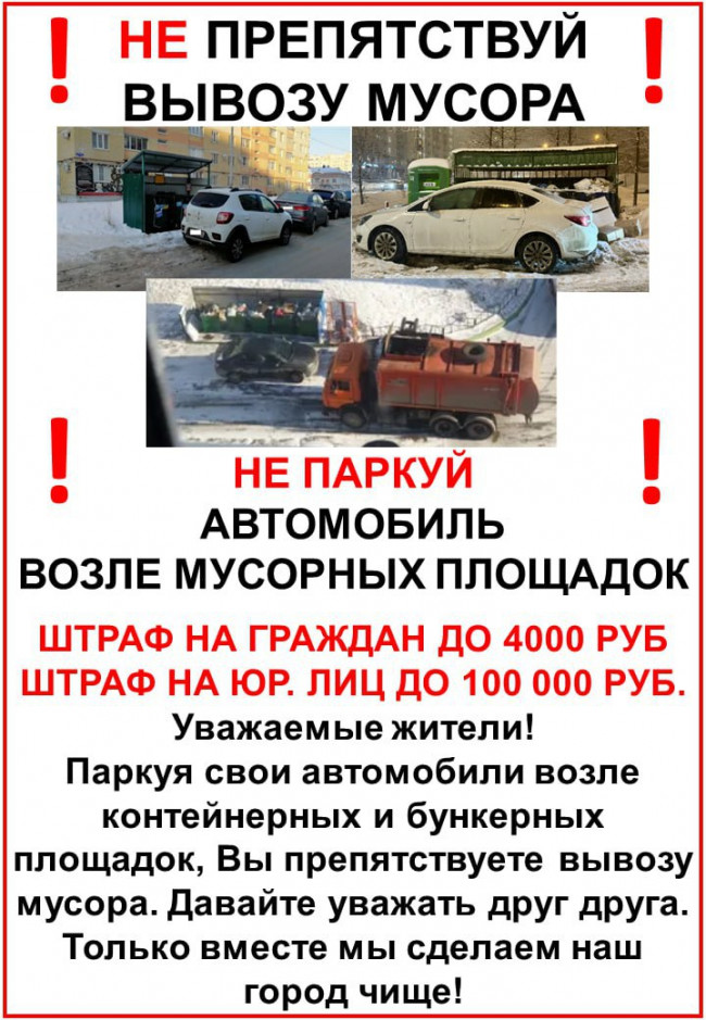 Часто наблюдаем картину, когда мусоровозы не могут выполнить свою работу по очистке контейнеров из-за оставленных автомобилей у контейнерных площадок. Дорогие автовладельцы, просим Вас ознакомиться с памяткой и не загромождать проезд. Когда чисто - нравится всем.